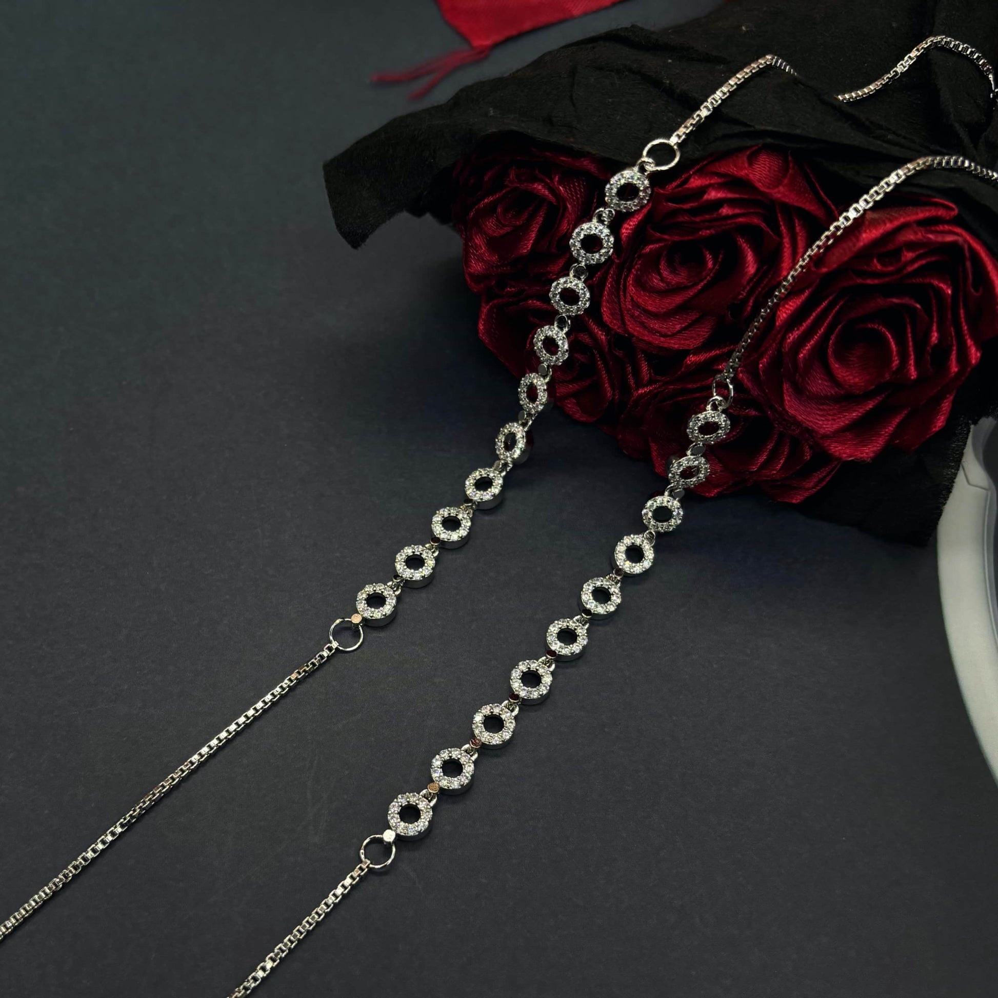 Elevate your elegance with these exquisitely crafted luxury anklets, designed to shimmer with every step. Made from authentic Italian 92.5 sterling silver, these anklets feature a graceful sequence of circular motifs adorned with brilliant CZ stones, offering a refined sparkle and modern sophistication. A perfect blend of everyday grace and occasion-ready glamour.