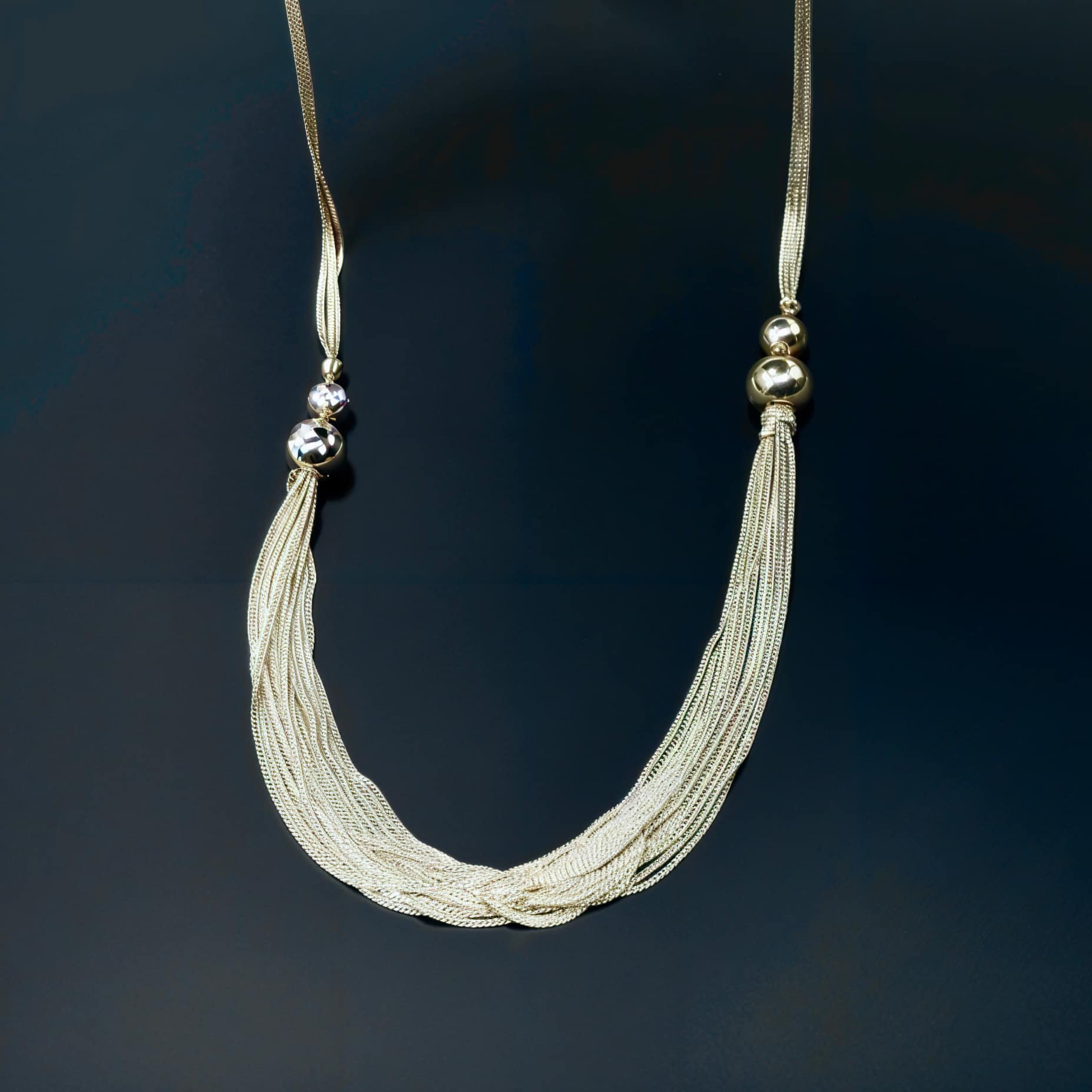 - Design: Elegant multi-strand cascade with silver ball accents