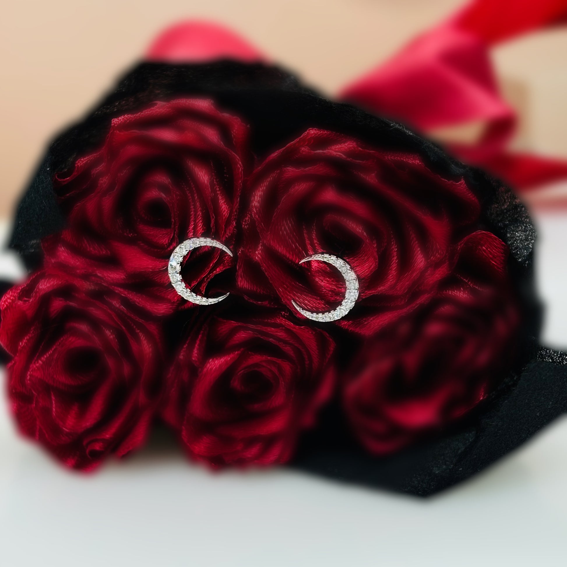 Elegantly crafted to capture the magic of the night sky, these crescent-shaped stud earrings radiate sophistication and subtle glamour. Designed in premium Italian 92.5 sterling silver and adorned with high-sparkle CZ stones, this pair adds a refined celestial charm to any look. Lightweight, classy, and perfect for daily wear or evening elegance.