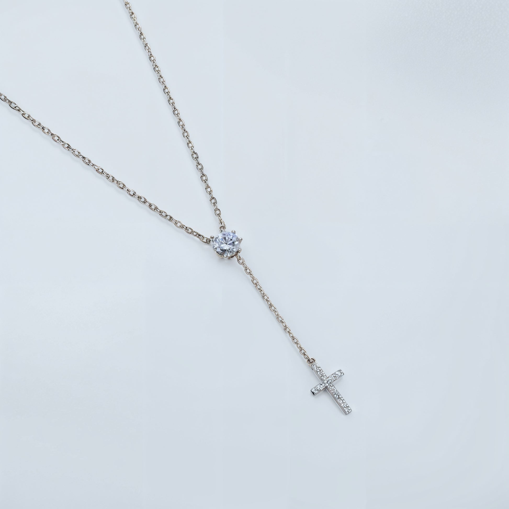 Elegant Cross Drop Necklace in Italian 92.5 Silver