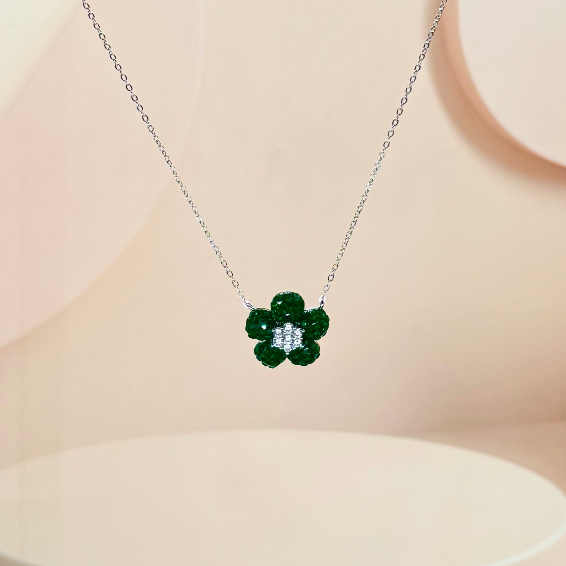 Emerald Blossom Elegance Necklace – Italian 92.5 Silver