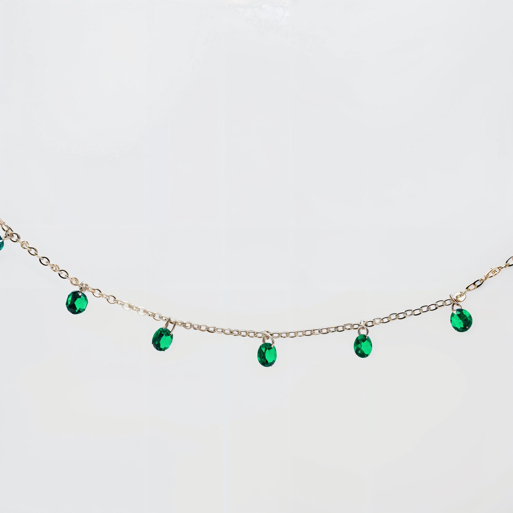 Elegantly designed with delicate emerald green CZ charms, this necklace brings a fresh pop of color to any style. Crafted from Italian 92.5 sterling silver, the chain features evenly spaced sparkling CZ drops that create a graceful, eye-catching movement—perfect for layering or wearing solo.