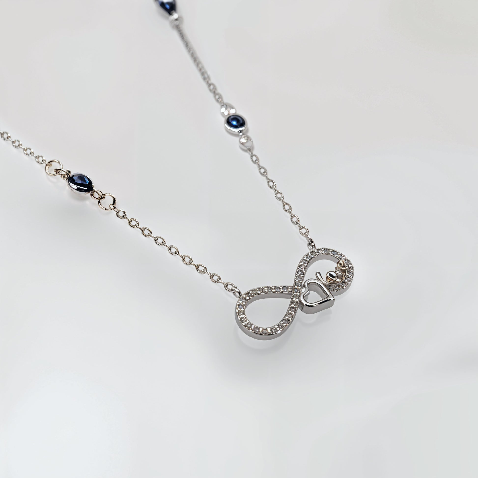 • Design: Infinity “Love” motif with heart and evil-eye detailing