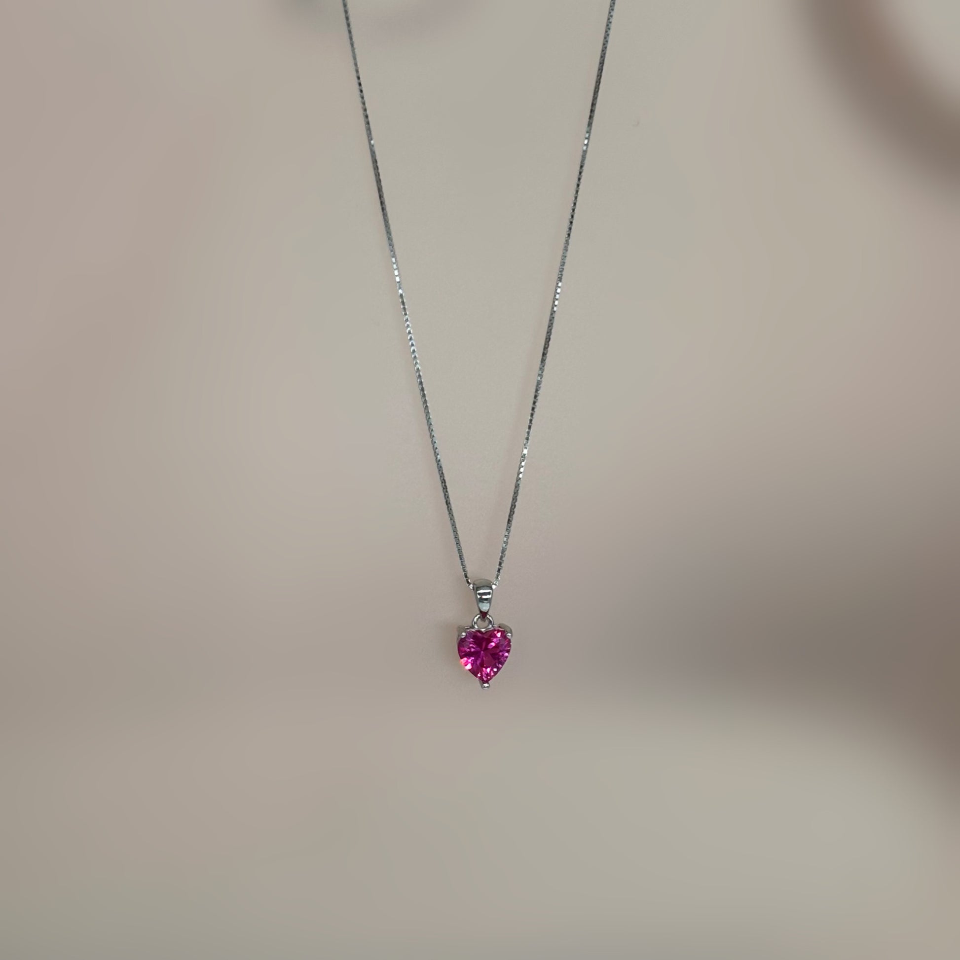 Pink Heart Solitaire Necklace in Italian 92.5 Silver