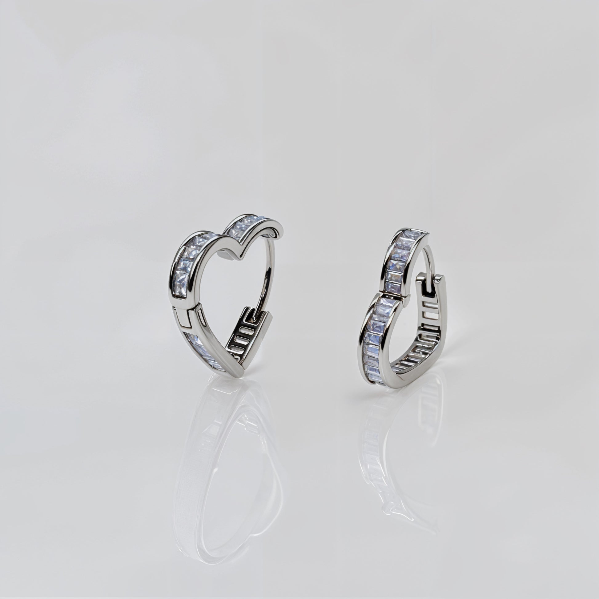 Elevate your elegance with these luxurious baguette-cut heart hoop earrings, crafted to perfection in premium Italian 92.5 sterling silver. Designed to shine from every angle, the shimmering CZ stones create a breathtaking sparkle — perfect for both everyday sophistication and special occasions.