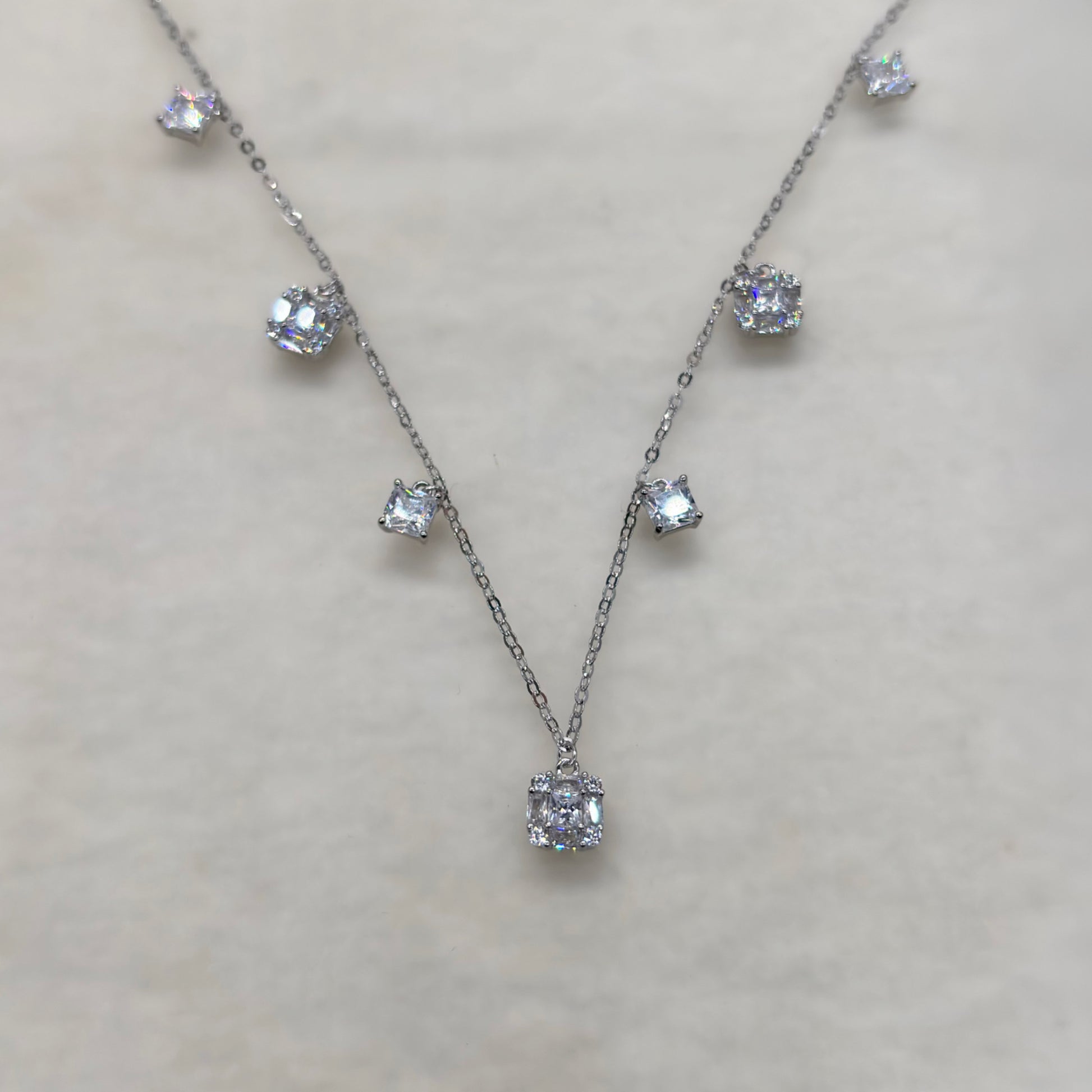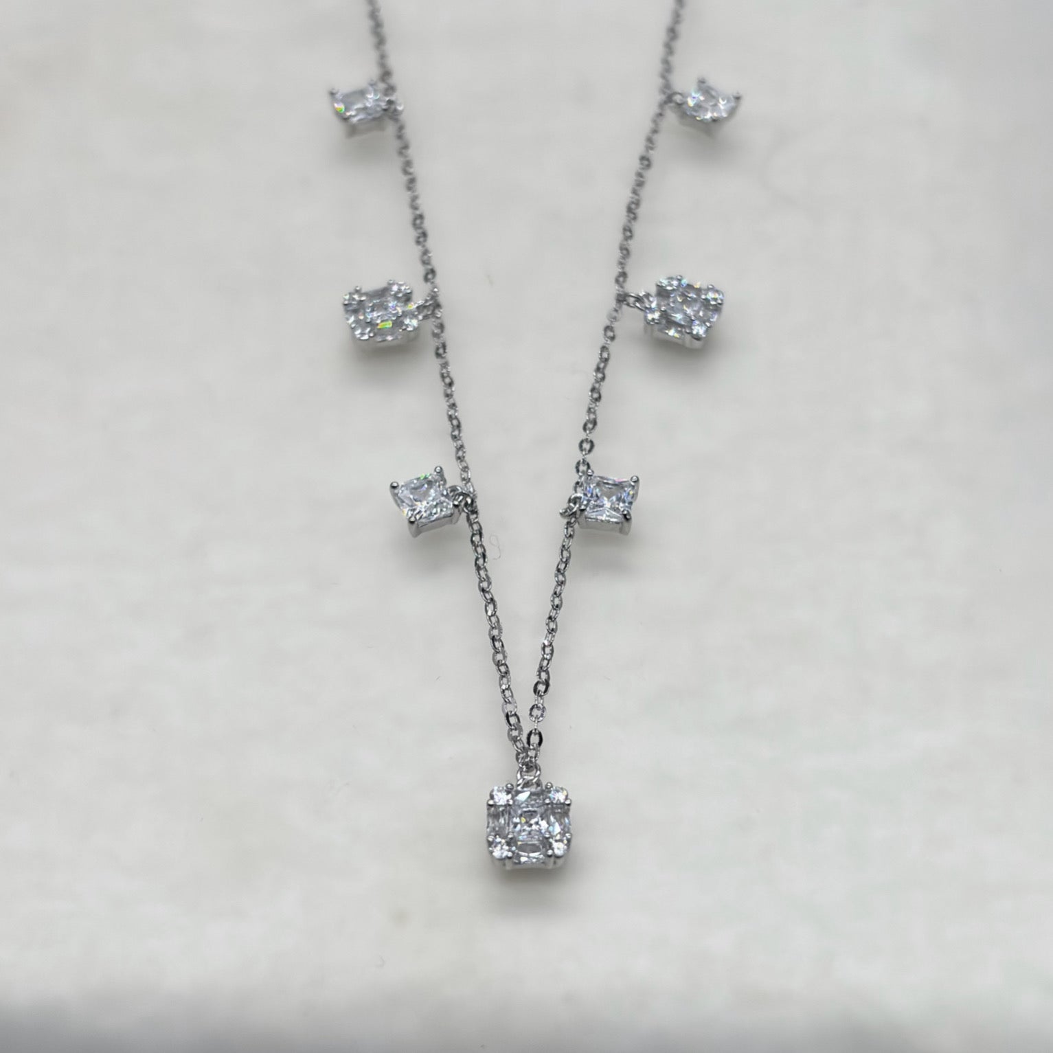 Radiant Solitaire Cascade Necklace in Italian 92.5 Silver