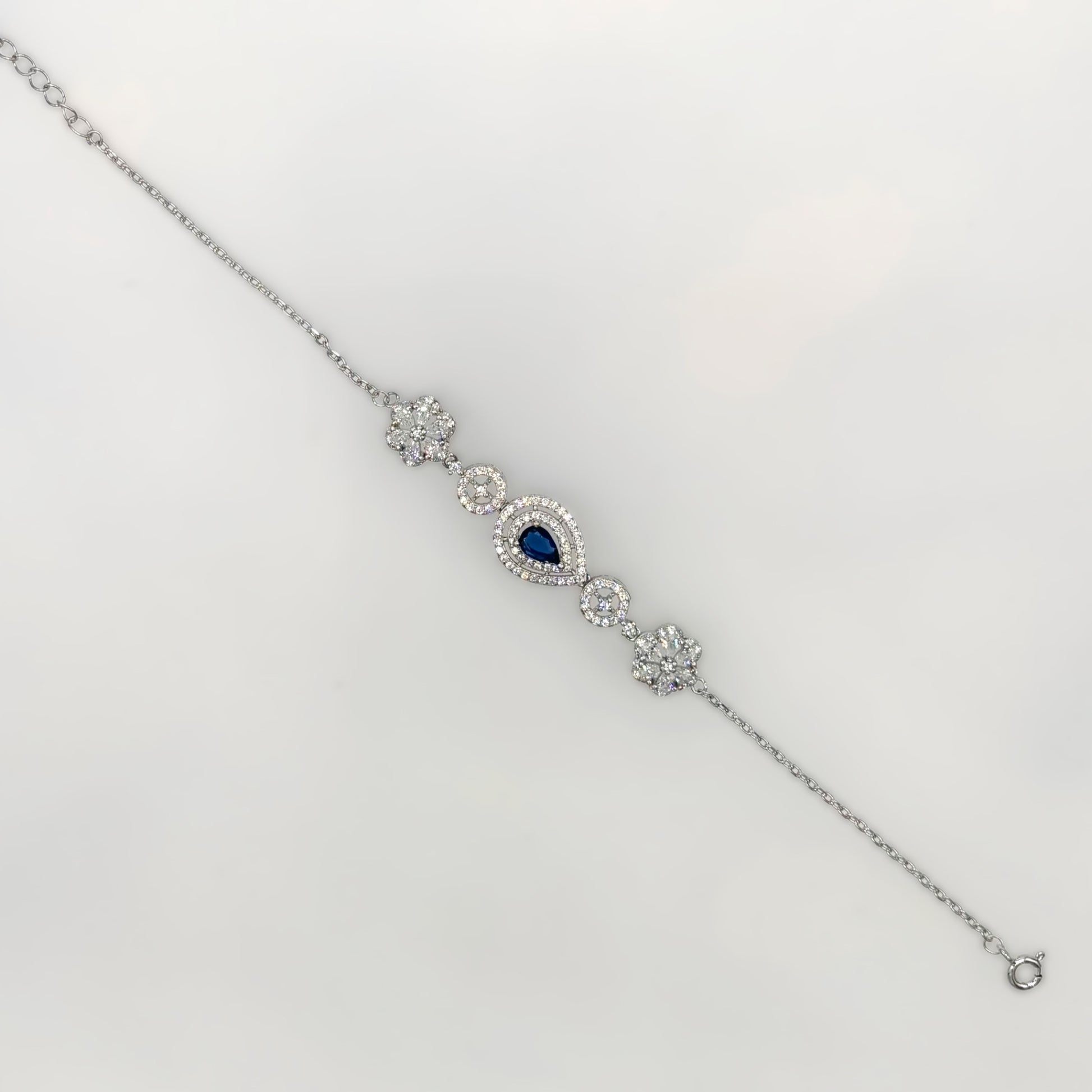 Royal Sapphire Droplet Halo Bracelet in Italian 92.5 Silver